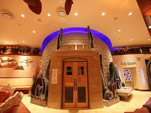 ICE ROOM! The ice room temperature is about 35 degrees and I'm not surprised that it is directly next door to the fire sudatorium. I can't be the first person to run from one to the other. I sat here for a good ten minutes cooling down and enjoying the cold air and soothing blue lights. The ice room isn't a lying down room either. It is lined on both sides with benches. I think because of the sitting upright and the cooler temperatures, I didn't feel the same sense of relax-ed-ness that I was feeling in the rooms prior to the fire sudatorium. But I enjoyed the ice room none-the-less.